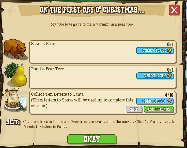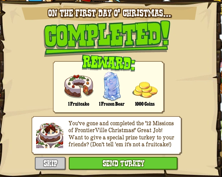 Pioneer's Completed the 12 Missions of FrontierVille Christmas!