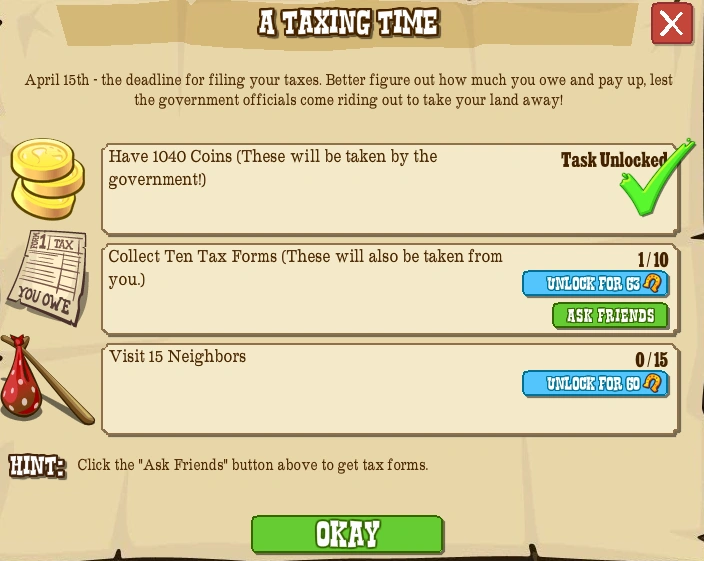 April Holidays, Part II of V was one of the Limited Edition Goals in FrontierVille. It was released on March 31st, 2011 and expired on May 1st, 2011. It was the second step in the April Holidays Goal Series.