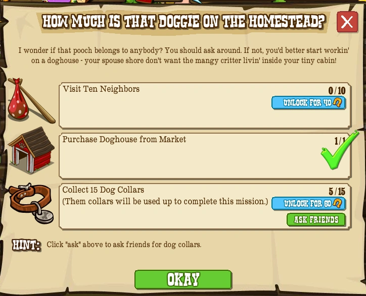 Doghouse, Part II of V is one of the Goals in FrontierVille. It was released on March 22nd, 2011. It is the second step in the Doghouse Goal Series.