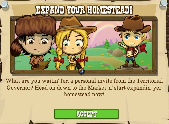 | Description | Homestead Expansion: A Goal Series that Begins a series of five special quests that let you expand to the 29x29 "Big Homestead"! |