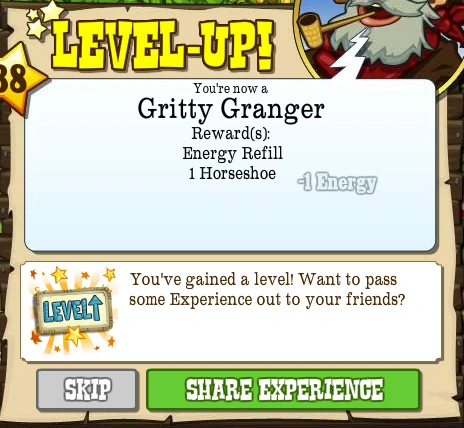 Level 38, also known as the Gritty Granger, is the thirty-eighth Level that the Pioneer can advance to in FrontierVille. It takes