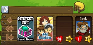 The Mystery Gift appeared on August 2, 2010 with a link in the list of Neighbors at the bottom of the Homestead. Like other gifts, the Pioneer can only send one Mystery Gift to each Neighbor per day.