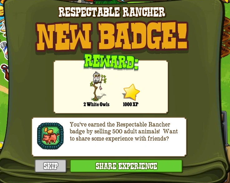 Pioneer sold 500 adult animals and has earned the Respectable Rancher badge! Pioneer wants to share the experience with everyone!