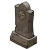 The Skull Headstone was a Decoration on FrontierVille. It is a type of Headstone. They were released on October 21st, 2010 as part of the Haunted Halloween Extravaganza. It was from the Market for