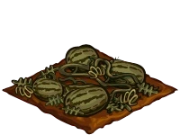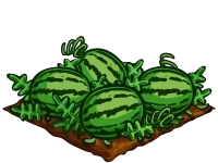 Watermelon are one of the crops available in FrontierVille. It can be purchased from the Market for 850 coins. Watermelon start to wither 10 days after being planted. They can be moved, but not rotated.